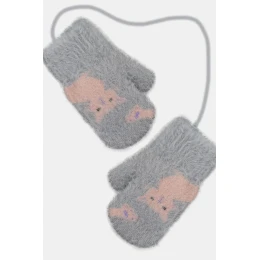 Dievčenské nadýchané rukavice spojené šnúrkou.
