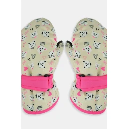 Rukavice pre dievčatá s potlačou Orthalion, zateplené, s jedným prstom. Rukavice ukončené manžetou s pásikom na nastavenie šírky - dobre držia na rukovätiach, chránia pred snehom.