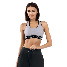 Top marki Reviver. Model F5511. Produkt został wykonany z 90% bawełna, 5% poliester, 5% elastan. Produkt posiada kieszonki na wkładki. Produkt damski. Miejsce zapięcia: tył. Top zapinany na klamerka.