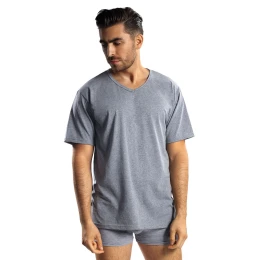 Koszulka marki Reviver. Model F5571 T2. Produkt został wykonany z 90% bawełna, 5% elastan, 5% poliester. Rodzaj dekoltu: w serek. Długość rękawa: krótki. Produkt męski.
