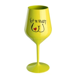 ŘIŤ SE SRDCEM - žlutá nerozbitná sklenice na víno 470 ml