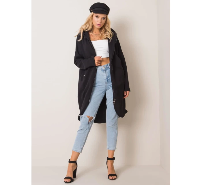 RUE PARIS Čierna dlhá mikina s kapucňou .