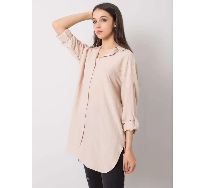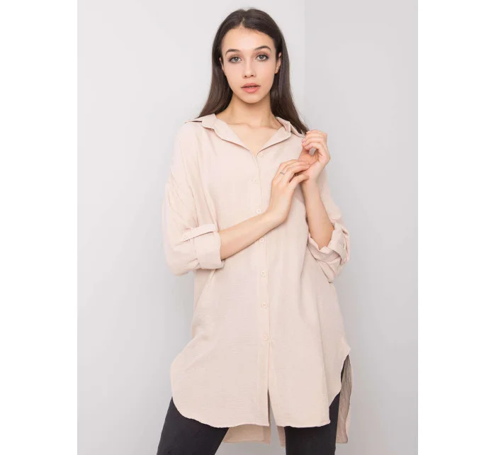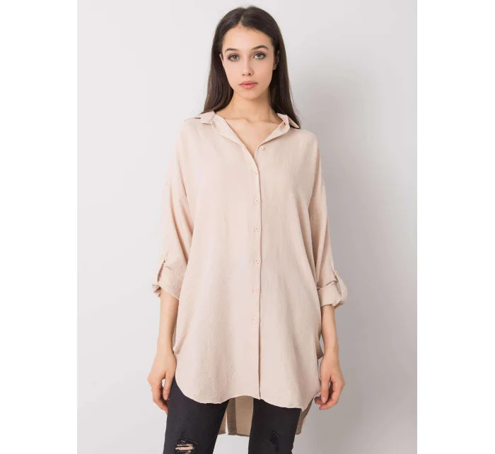 RUE PARIS Béžová dámska košeľa voľného strihu .