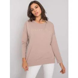 RUE PARIS Tmavo béžová blúzka s nápismi .