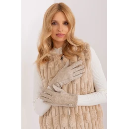 Elegantné dámske rukavice zo zateplenej tkaniny s ozdobným geometrickým vzorom. Ozdobné gombíky na zápästí s povrchovou úpravou. Ukazovateľ s vyšívaným kvetom, ktorý umožňuje ovládať telefón bez nutnosti vyzliecť si rukavice.