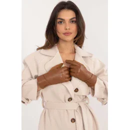 Elegantné dámske rukavice z hrejivého materiálu v kombinácii s ekologickou kožou. Ozdobné gombíky na zápästí. Ukazovák s vyšitým kvetom umožňujúci ovládanie telefónu bez nutnosti vyzliecť si rukavice.