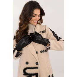 Elegantné dámske rukavice z hrejivého materiálu v kombinácii s ekologickou kožou. Ukazovák s vyšitým kvetom umožňuje ovládať telefón bez nutnosti vyzliecť si rukavice.