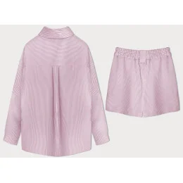 Růžová dámská pruhovaná souprava košile a šortky model 20082459 - MADE IN ITALY
