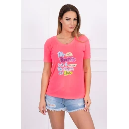 růžová halenka s potiskem model 18742970 - K-Fashion