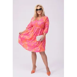 Letné kvetinové ružovo-oranžové šaty (8276)