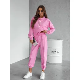 Ružová dámska tepláková súprava - mikina so stojačikom a nohavice (82162)