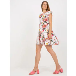Biele kvetinové mini šaty s krátkymi rukávmi.