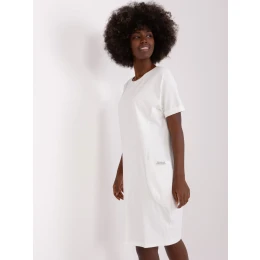 Bavlnené základné šaty v ecru farbe s dĺžkou po kolená.