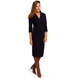 Pridanie recenzie k S194 Pletené šaty s výstrihom do V - tmavo modré