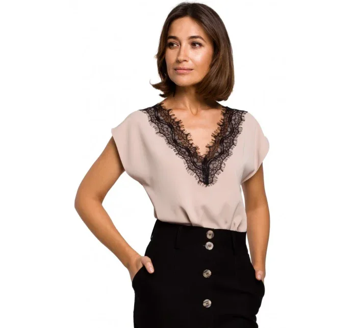 Pridanie recenzie k S206 Top bez rukávov s čipkovým výstrihom - ecru farba