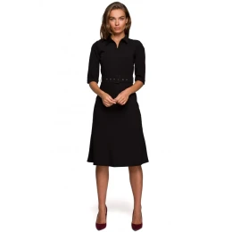 65 % polyester 30 % viskóza 5 % elastan V páse majú opasok s prackou, sukňu šikmého strihu a zips s klasickým golierom - je to módny odev. DETAILY PRODUKTU: šaty z tkanej látky s golierom vpredu so zipsom uprostred rukávy s dĺžkou po lakte puzdrové rukávy sukňa šikmého strihu dĺžka po kolená opasok s prackou súčasťou balenia Naša modelka je vysoká 174 cm a nosí veľkosť S