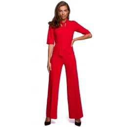 S243 Elegantný overal so zaväzovaním za krkom - červený