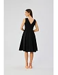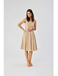 65 % polyester 30 % viskóza 5 % elastan DETAILY VÝROBKU: tkaný materiál šaty bez rukávov so zaobleným výstrihom véčkový výstrih vpredu podprsenka vzadu pod kolenami nepodšitý skrytý zips vzadu Naša modelka má 176 cm a nosí veľkosť S Navrhnuté a vyrobené v Poľsku