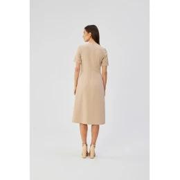 model 19647341 Šaty s řasením na boku béžové - STYLOVE