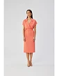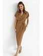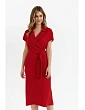 95% polyester 5% elastan DETAILY VÝROBKU: košeľové šaty z tkanej látky s golierom zavinovací vrch s krátkymi netopierími rukávmi ceruzková sukňa stredná dĺžka čiastočne elastický pás dĺžka pod kolená rozparky na chrbte nepodšitý opasok na zaväzovanie naša modelka je vysoká 176 cm a nosí veľkosť S navrhnuté a vyrobené v Poľsku