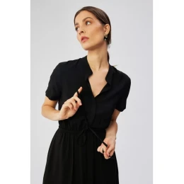 model 19647469 Viskózové šaty se šňůrkou v pase černé - STYLOVE