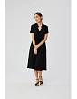 S366 Viskózové šaty so šnúrkou v páse - čierne