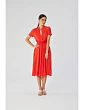 100% viskóza PODROBNOSTI O PRODUKTE: tkané 100% viskóza šaty strednej dĺžky so zaväzovaním v páse áčkový dizajn so zapínaním na gombíky krátke rukávy so šnúrkou bez podšívky naša modelka je vysoká 176 cm a nosí veľkosť S navrhnuté a vyrobené v Poľsku