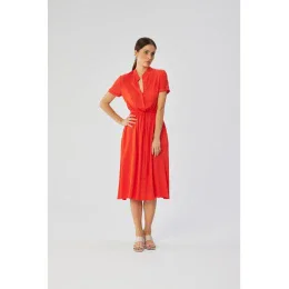 S366 Viskózové šaty so šnúrkou v páse - koralové