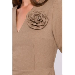 97% polyester 3% elastan DETAILY PRODUKTU: tkaná látka pouzdrové šaty střední délky s výstřihem do V střih na míru skrytý boční zip podšité ozdobná odnímatelná květina naše modelka je vysoká 174 cm a nosí velikost S navrženo a vyrobeno v Polsku