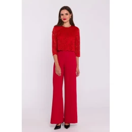 S381 Kombinéza s čipkovanými detailmi - červená