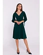 96% polyester 4% elastan DETAILY VÝROBKU: pletenina priliehavý strih so zavinovacími šatami výstrih do V s možnosťou stiahnutia pod kolená skrytý zips na chrbte bez podšívky Naša modelka má 174 cm a nosí veľkosť S