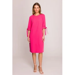 S393 Šaty áčkového strihu so zaväzovacími rukávmi - ružové
