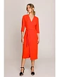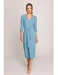95% polyester 5% elastan DETAILY VÝROBKU: tkaný materiál midi šaty bez rukávov zavinovací dizajn výstrih do V čiastočne podšitý vrchný diel trojštvrťové rukávy čiastočne elastický pásik opasok na zaväzovanie skrytý zips na chrbte Naša modelka má 175 cm a nosí veľkosť S navrhnuté a vyrobené v Poľsku