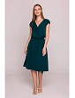 materiál: 95% polyester 5% elastan Materiál: hladká tkanina s jemným leskom PODROBNOSTI O VÝROBE Výstrih: výstrih do V s ozdobným volánom Rukávy: krátke, mierne spadnuté Zapínanie: skrytý bočný zips Vrecká: žiadne Podšívka: žiadna Doplnky: látkový opasok na zaväzovanie v páse Model: S411 Navrhnutý a vyrobený v Poľsku Modelka je vysoká 170 cm a má na sebe veľkosť S STYLE A STRIH Strih: mierne rozšírený smerom dole Tvar: áčkový Dĺžka: midi, pod kolená