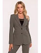 HLAVNÁ VLOŽKA 63% polyester 33% viskóza 4% elastan PODŠÍVKA 100% polyester Tkanina: hladká tkanina s jemným povrchom PODROBNOSTI O PRODUKTE Golier: klasický s ručne dokončovanými klopami Zapínanie: jednoradové, na gombíky Pás: vypasovaný s prednými a zadnými záhybmi Rukávy: dlhé, úzke Podšívka: celopodšitá Model: S417 Navrhnutý a vyrobený v Poľsku Model je vysoký 174 cm a nosí veľkosť S STYLE A STRIH Strih: jednoradové sako, vypasované v páse Tvar: rovný s jasne vymedzenou líniou pása Dĺžka: pod líniu bokov