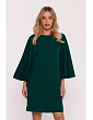 65% polyester 30% viskóza 5% elastan LÁTKA: hladká látka PODROBNOSTI O PRODUKTE Výstrih: okrúhly Rukávy: široké, rozšírené netopierie rukávy, 3/4 dĺžka Sukňa: rovná Pás: voľný, nezastrihnutý Zapínanie: skrytý zips na chrbte Model: S426 Navrhnutý a vyrobený v Poľsku Modelka je vysoká 174 cm a nosí veľkosť S ŠTÝL A STRIH Štýl: elegantné trapézové šaty s odvážnymi rukávmi Tvar: voľný vrch, rozšírené rukávy, rovná sukňa Dĺžka: mini - nad kolená