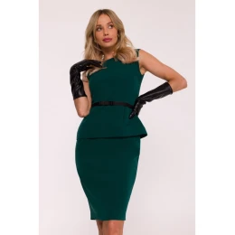 HLAVNÁ VLOŽKA 65% polyester 30% viskóza 5% elastan Podšívka 100% polyester VLOŽKA: hladká tkanina PODROBNOSTI O PRODUKTE Výstrih: okrúhly Rukávy: bez rukávov Sukňa: vypasovaná, ceruzkového strihu Pás: zvýraznený opaskom a peplumom, ktorý jemne zakrýva boky a bruško Zapínanie: dva skryté zipsy na chrbte Doplnky: tenký kontrastný opasok so zapínaním na gombík Model: S427 Navrhnutý a vyrobený v Poľsku Modelka je vysoká 174 cm a nosí veľkosť S STYLE A STRIH Štýl: elegantné ceruzkové šaty s peplumom Tvar: vypasovaná sukňa, vrchný diel s peplumom, ktorý vytvára ženské proporcie Dĺžka: po kolená