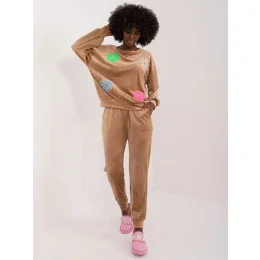 Rozmery súpravy v jednej veľkosti merané na plocho: šírka blúzky v podpazuší - 57 cm, dĺžka blúzky - 57 cm, dĺžka rukávov - 53 cm, šírka pása - 37 cm, dĺžka nohavíc - 95 cm, výška pása - 31 cm