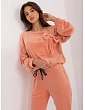 Rozmery súpravy v jednej veľkosti merané na plocho: šírka blúzky v podpazuší - 58 cm, dĺžka blúzky - 62 cm, dĺžka rukávov - 58 cm, šírka pásu - 36 cm, dĺžka nohavíc - 96 cm, výška pásu - 30 cm
