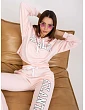Jedna veľkosť meraná na plocho: šírka blúzky v podpazuší - 52 cm, dĺžka rukávov - 59 cm, dĺžka blúzky - 52 cm, šírka nohavíc v páse - 34 cm, dĺžka nohavíc - 97 cm, výška pása - 30 cm.: