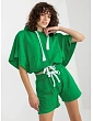 Rozmery súpravy v jednej veľkosti meranej na plocho: šírka blúzky v podpazuší - 67 cm, dĺžka rukávov - 29 cm, dĺžka blúzky - 55 cm, šírka šortiek v páse - 34 cm, výška pása - 30 cm, dĺžka šortiek - 41 cm. :