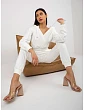 Rozmery súpravy v jednej veľkosti meranej na plocho: šírka blúzky v podpazuší - 52 cm, dĺžka rukávov - 60 cm, dĺžka blúzky - 46 cm, šírka nohavíc v páse - 33 cm, výška krosien - 31 cm, dĺžka nohavíc - 102 cm. :