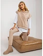 Rozmery súpravy v jednej veľkosti meranej na plocho: šírka blúzky v podpazuší - 55 cm, dĺžka blúzky - 65 cm, šírka blúzky v podpazuší - 55 cm, dĺžka rukávov - 52 cm, dĺžka blúzky - 75 cm, šírka nohavíc v páse - 34 cm, výška pása - 30 cm, dĺžka nohavíc - 95 cm.: