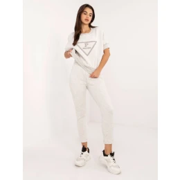 Wymiary kompletu w rozmiarze one size mierzone na płasko: szerokość bluzy pod pachami - 72 cm, długość bluzy - 56 cm, szerokość spodni w pasie - 38 cm, wysokość stanu - 34 cm, długość spodni - 97 cm.