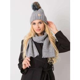 RUE PARIS Šedý zimní set čepice a šály Polský výrobek