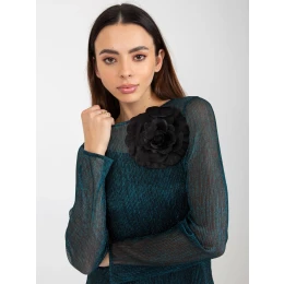 Dvojdielna spoločenská blúzka v morskej čiernej farbe s brošňou.