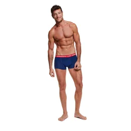 Perfektná sada 2 pánskych boxeriek, ktorá je určená každému mužovi. Sada obsahuje šedú a tmavo modrú farbu, obe verzie majú klasický, osvedčený, pohodlný strih s výrazným elastickým pásom pokrytým potlačou.