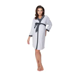 Tehotenská nočná košeľa s kontrastným lemovaním. Obálkový výstrih s dojčiacou vložkou. Je možné nosiť aj po tehotenstve. Doplnené županom v rovnakej farbe s opaskom.
