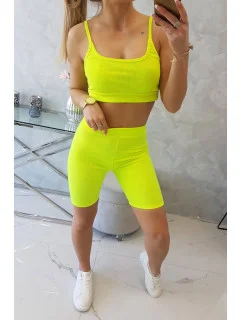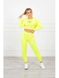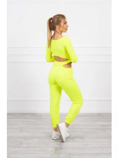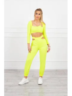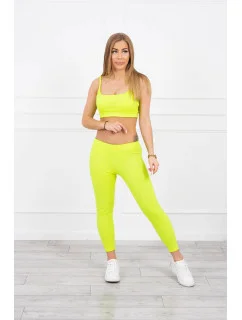 Súprava sa skladá z topu a dlhých nohavíc. Krátky top s vystuženými košíčkami, obdĺžnikový výstrih. Dlhé nohavice s vysokým sedom a širokými nohavicami, elastický pás.