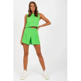 Sada sa skladá zo šortiek a topu. Šortky s vysokým pásom, širokými nohavicami a elastickým pásom. Top bez rukávov s ozdobným viazaním na chrbte.